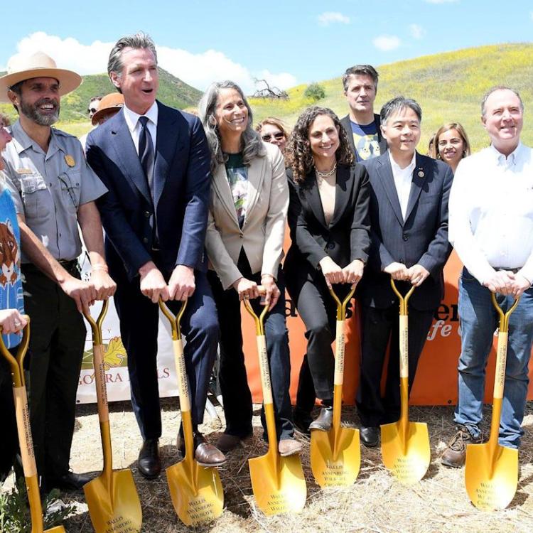 Jon Kopaloff/ for The National Wildlife Foundation Regional Executive Director, National Wildlife Federation Beth Pratt, David Szymanski, Governor of California Gavin Newsom, Mayor of Agoura Hills Deborah Klein-Lopez,