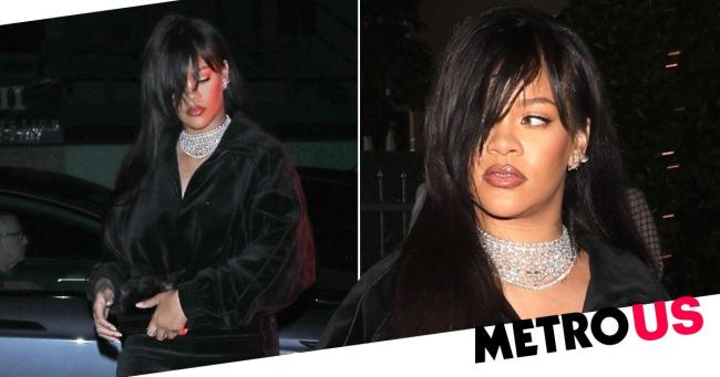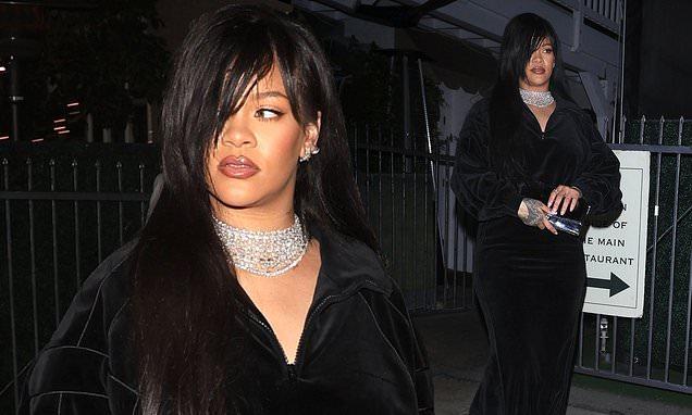 Rihanna exudes glamour in velvet black dress and dazzling statement necklace as she heads for dinner in Santa Monica